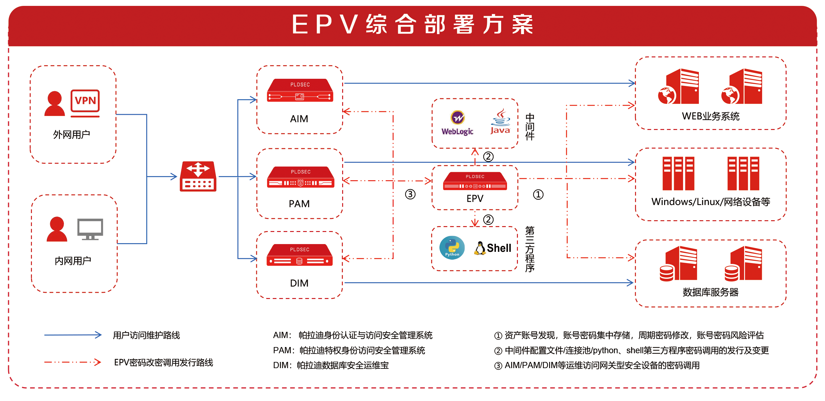 Palladium Enterprise Password Safe (EPV) is a professional account password management product based on zero trust security management architecture to solve the risk of enterprise account password management. EPV mainly solves the problems and needs of enterprise users in password security storage, periodic automatic password change, password issuance security, automatic account acquisition and risk analysis, and password activity recording.
