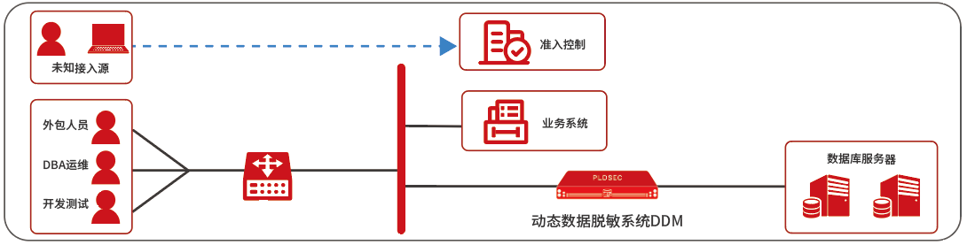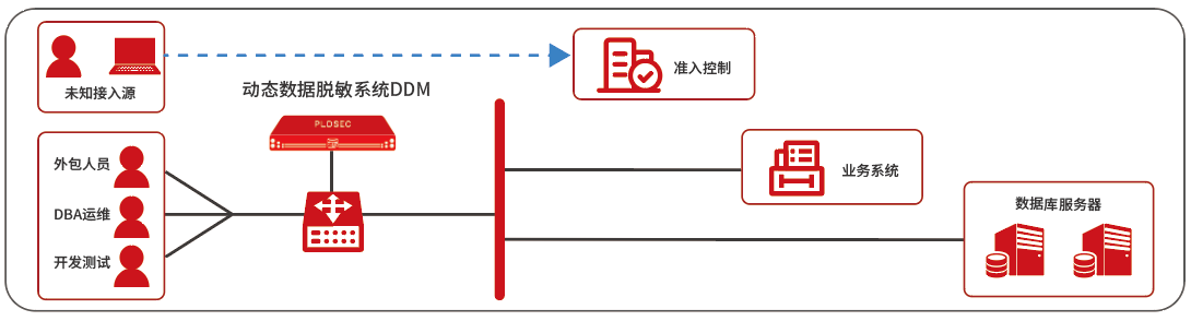 For service access masking, DDM can directly shield, encrypt, hide, and audit sensitive data in the production database accessed by business systems through a transparent serial deployment mode, without changing the middleware and client configuration, and ensuring business continuity.
